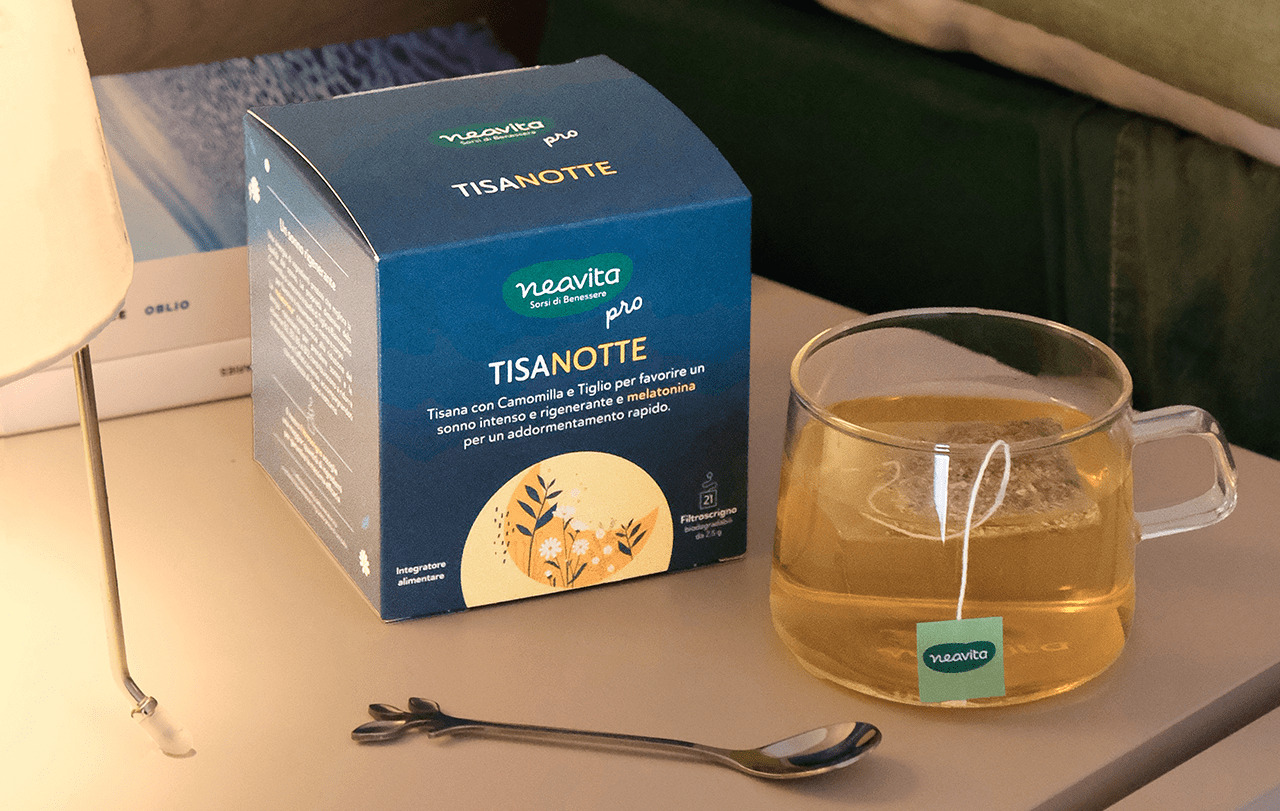Camomilla, tiglio, biancospino, melatonina, vitamine B2, B3, B5 e B12.